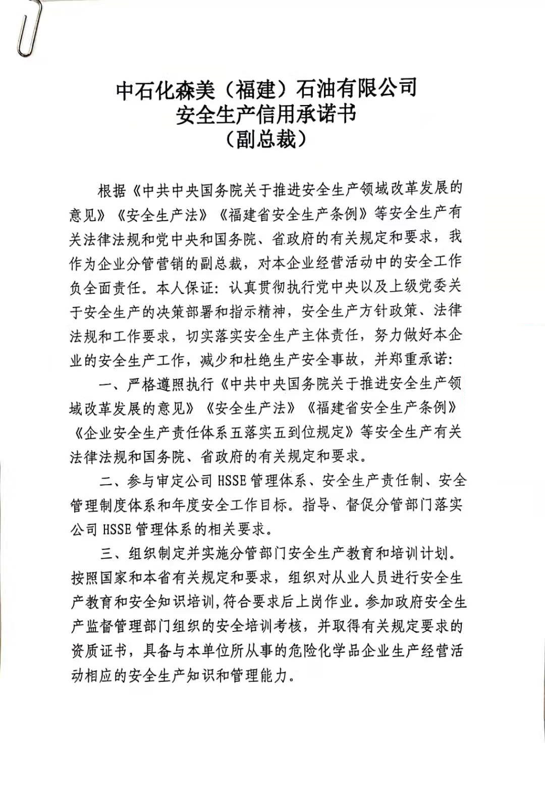 金年会戴尽良副总裁安全生产信用承诺书